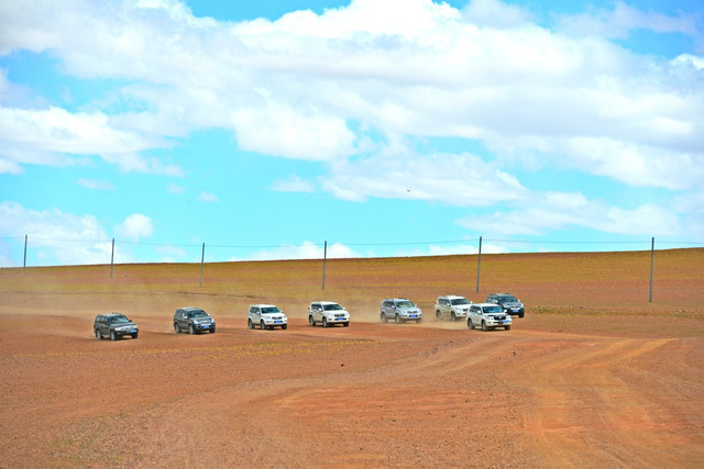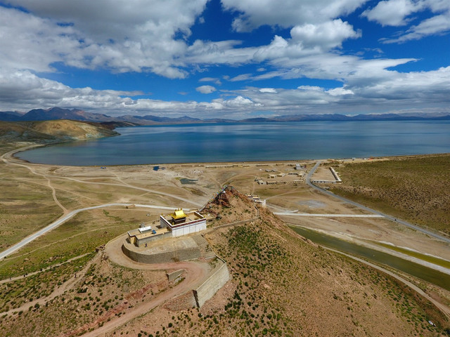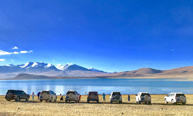 车队在阿翁措湖公路会合后抵达盐湖小镇,熙熙攘攘、充满烟火气息的小镇,与荒原的空辽形成强烈对比,有种重回人间的感觉。午餐后车继续在荒原上穿梭,与上午不同的是,中间会经过一些大小不等的湖泊,仿佛一颗颗宝石镶嵌其中,遗世独立的孤独与静美。