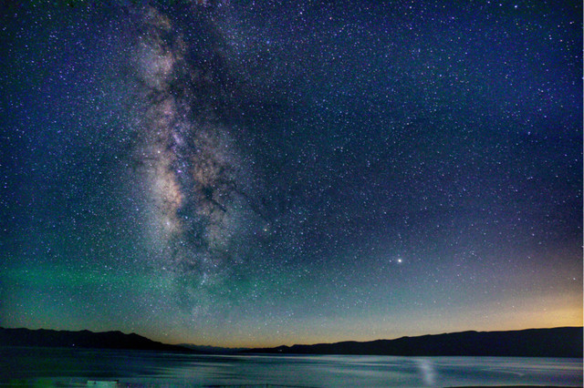 夕阳余晖落下时,抵达 萨嘎 ,也是计划的住宿点。暗夜星空,银河璀璨,在海拔4500的高度往天上看,觉得天空就近在触手可及的咫尺,繁星仿佛倾泻而下,如梦似幻。