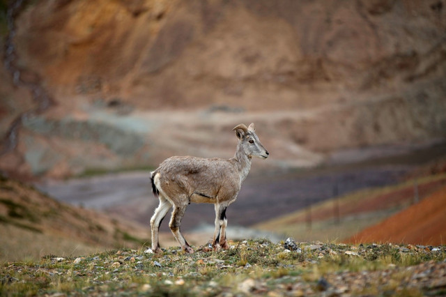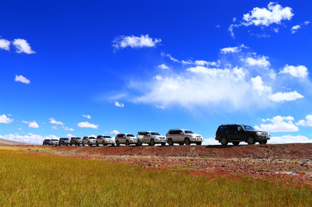 继续在金黄色的大草原上穿行,这段路的水草丰美,沿途可以看见奇妙的彩色山体。出现这样奇丽风光,是因为山体含有各种矿,所以呈现红、绿、黄各种颜色。还有数量颇多的野驴,身体素质好的驴友们下车与野驴追逐玩闹、我们则远远地跟野驴们打招呼。