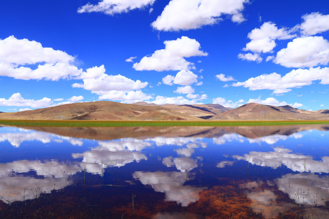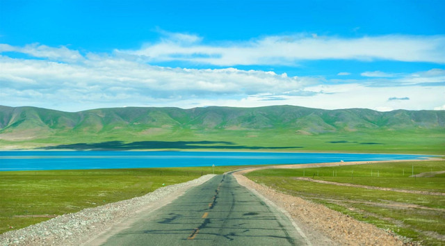早上从 措勤 出发,出了县城,就看见一片绿色草原,今天路况不佳,泥地沙石比较多,尤其从 措勤 到扎日楠木措,非常颠簸,真的有要“散架”的感觉。然而,沿途风景依然给我们惊喜,从 措勤 到扎日南木措有一段经过古河床,千百年前的湖底被冲刷得象波浪般上下起伏。好在这段颠簸的路途并不长,上午我们就抵达了【扎日楠木措】,也称塔热措,是 西藏 自治区第三 大湖 。站在湖边的一座小山头,站在山头上环顾四周,湖天一色,湖岸线条优美,湖水在灿烂阳光的照耀下,蓝得分外妖娆。