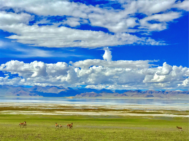 在留下很多照片后,车队沿着美丽的草原前往尼玛县,今天的路况很差,但一路的美景让人忘记了疲劳。中午抵达尼玛,午饭后,稍作休整,继续前往达则措,进入【野生动物藏羚羊】的天堂,一路上不时出现各种野生动物。车队沿着【色林措】的北岸,绕湖顺时针前行,不时看数量不少的藏羚羊和“白屁股”黄羊,怡然自得地奔驰在天地间,轻盈而矫健。