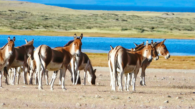 出了仁青休布错,开始穿越草原,触目之处,是一片片延绵的青黄,一路上都会看到 阿里 的高原精灵——藏原羚、旱獭、黑颈鹳和藏野驴。 阿里 之行,一路上见到最多的就是“白屁股”黄羊和藏野驴,这些青藏高原的精灵,自由自在地生活在这片 阿里 无人区。