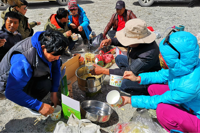 中午在扎布耶茶卡边来一场野餐,放一首藏歌,跳一段舞,真是一次特别又新奇的体验。