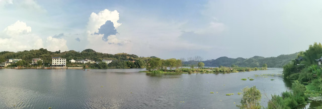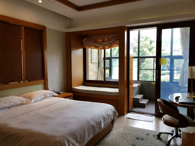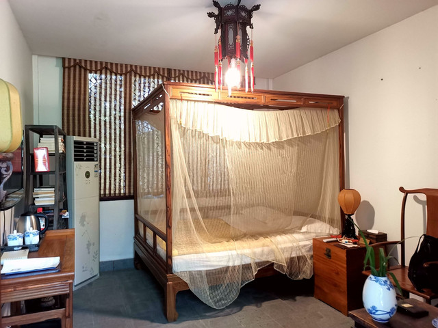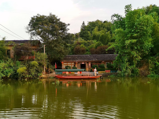 书院里的客房全部都古色古香,别有一番风味。住下休息到天气没那么热的时间,出来在院子里游览。安陵书院位于郴州便江旅游区的一个独体岛上,占地5万平米,建筑面积近七十余亩,书院以苏州园林式的古典建筑风格为基调,移步换景,处处是景,非常适合照相。晚饭时徒步走出书院大门外大约两百米的地方,河对岸的“钓鱼岛农庄”吃饭。这边河面不宽,一条绳索横跨河面,船是靠拉绳索行进的。没曾想这农庄还挺汪,几乎满座,老板是个很热情的小伙子,我们接下来的行程的问题他都热情地给我们解答。