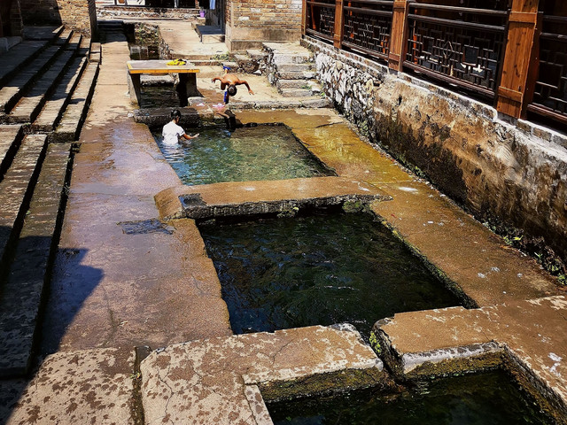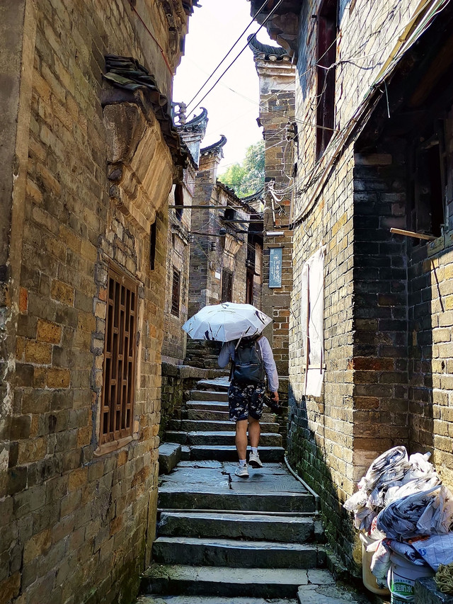 吃过早餐开车离开蔡伦竹海景区前往郴州市永兴县的板梁古村。板梁村历史久远,初建于宋末元初,强盛于明清时代,距今有600多年历史,是原金陵县的重要集镇,也是桂阳、耒阳、常宁往返的商埠之地。古村内至今仍保存了360多栋完好无损的明清历史建筑,这些历千劫而不倒的古民居,栋栋雕梁画栋,飞檐翘角,无论是它的水磨青砖,还是门当户对,或者是它的砖雕、石雕、木雕,其工艺都十分精湛,让人叹为观止。村子里的“韵泉”和“双龙泉”出水量非常大,充实了整个古村的水系,让整个古村充满活力。
