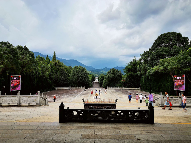 早上仍然在房间里泡了会儿温泉,9点半出发去炎帝陵。炎帝陵,位于湖南省株洲市炎陵县鹿原镇鹿原陂,西濒斜獭水,炎帝陵自宋乾德五年(967年)建庙之后,已有千余年历史,随着历代王朝的兴衰更替,炎帝庙也历尽沧桑,屡毁屡建。相传炎帝神农氏晚年来到南方,因误食断肠草而崩葬于长沙茶乡之尾,也就是现在湖南省株洲市炎陵县炎帝陵。现今华夏大地上有多个地方号称炎帝陵,且各有各的说法。有专家分析认为,从时间跨度和地域跨度上来看,炎帝不是一个人,而是一个有传承的部族首领,这就解释了有多个炎帝陵这个问题,个人也觉得这个说法比较靠谱。