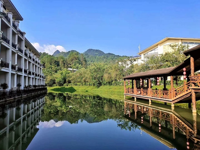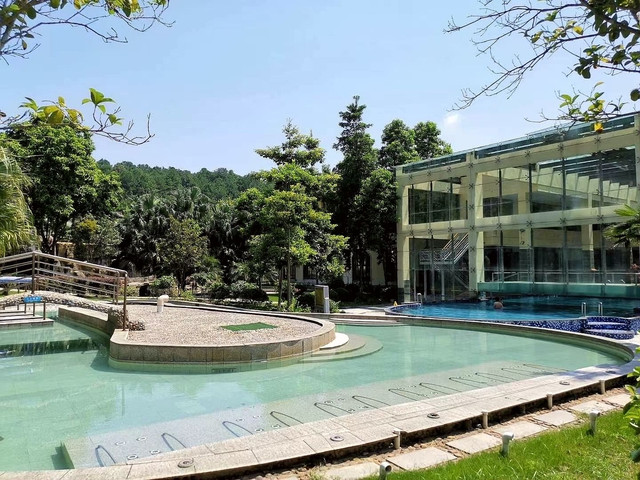 酒店的自助早餐很丰富,温泉要9点以后才开放,吃过早餐就到酒店后面天禅谷景区游览,一路风景不错,空气清新。上面还有个十二生肖广场,在广场中央发声有很强的回音。我们沿着山路一直往前走,山上植被丰富,景色怡人。我们绕了整个山头一大圈,谓之圆满。出来之后继续泡温泉直至中午退房。