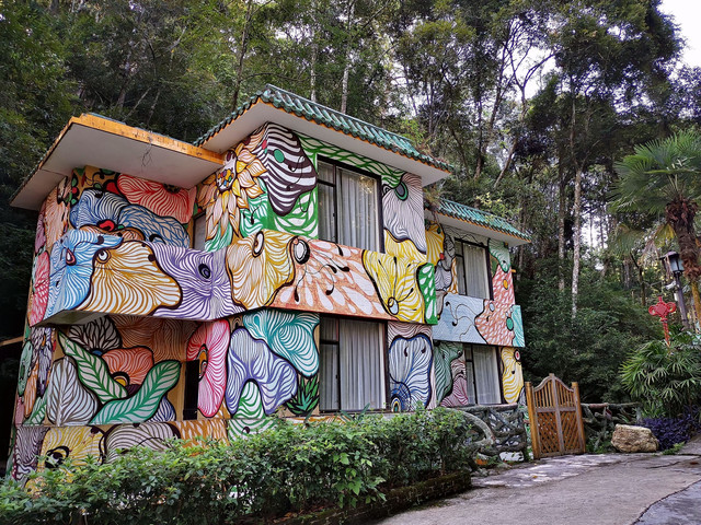 韶关经律论国际酒店所在的小坑镇很久以前就到过,当时就有个温泉疗养院,依稀记得进小坑的那条路上的风景很不错。这次出行由于只有我一人开车,所以设计每天的路程不能太远,就把这里作为第一站。8月19日早上9点开车出发,三个小时左右到达经律论国际酒店,在酒店马路对面的农家饭店吃了午饭,饭后到小坑镇里转了转,买了箱饮料,还去参观了一下镇旁的“狂人国际路亚基地”。之后入住经律论国际酒店、泡温泉。这里的温泉号称是国内含氡量最高的温泉,是国家医用温泉标准的七倍多,出水温度72度。温泉区有室内温泉池,还有数十个室外温泉池,泡起来感觉水质真的很好。酒店吃的晚餐,味道好且不贵,那道招牌菜----蒸猪红很有特色,相当好吃。
