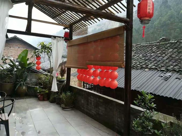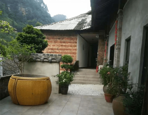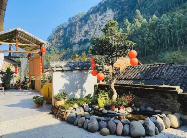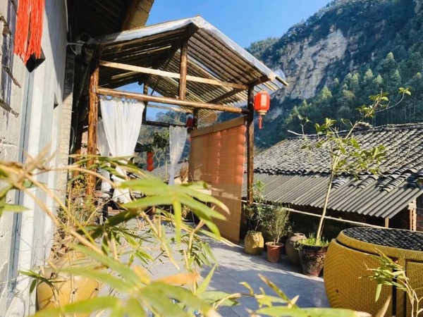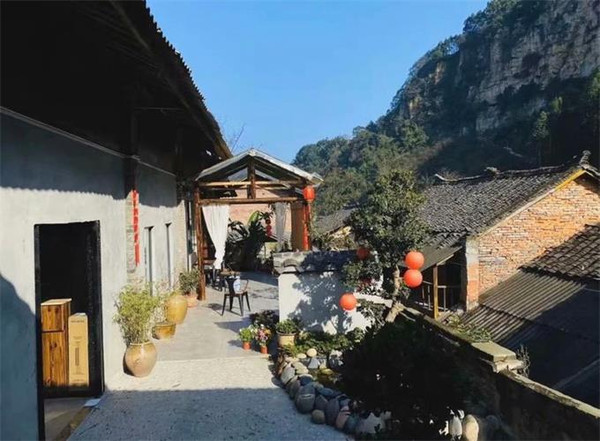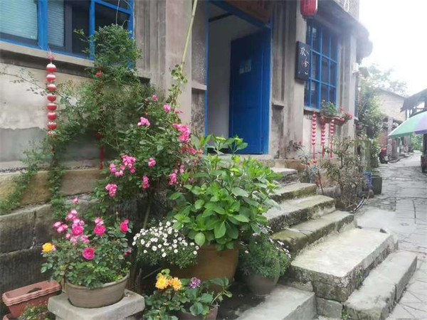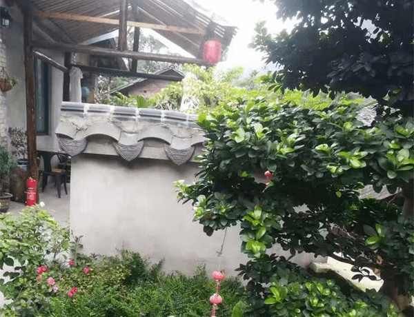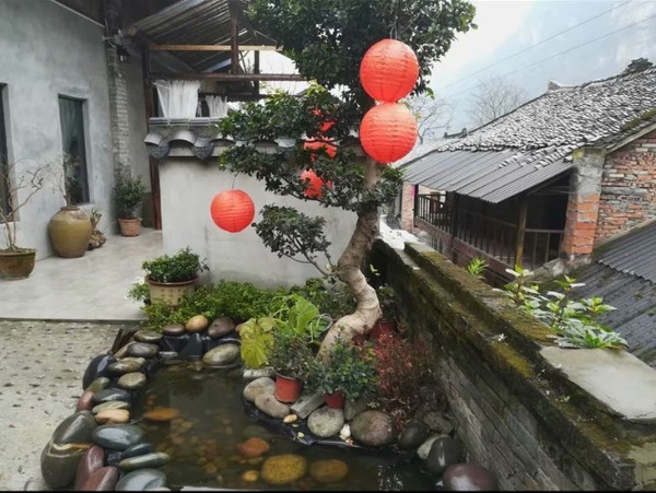 院内的红灯笼和明艳鲜花绿植随意缀撒,一幅人文与自然相映成趣的工笔画便跃然纸上,将山脚下川西民居的质朴和温婉娓娓道来。