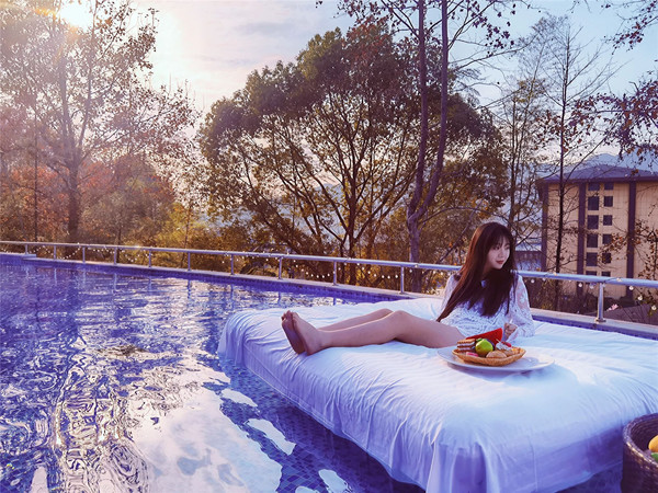 以花海为背景倚靠无边界温泉池畔,打卡落日时分,68汤特色温泉泡池,每一处都有每一处的享受惊喜。