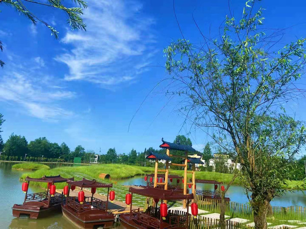 我们休息一段时间后小杨说可以去湖里游船,然后感受一下湖面风风光,说不定还有机会和成群的白鹤有近距离接触的机会。我们一起踏上仿古画舫,游弋在湖上,我还很臭美的拍了一段抖音。这个过程中看到很多的白鹤从头顶飞过,可惜是没有抓拍到很好的画面。