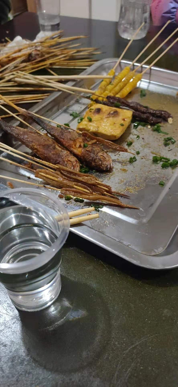 我们的食材准备好之后小杨就开始了厨艺展示,一边忙前忙后的准备我们的东西,一边又在招呼一些其他工作的事情,我们不忍心他如此劳累,让他去处理自己的事情,他却坚持说一定要陪我们吃好,喝好,玩好。吃烧烤的过程中他拿出了自己珍藏已久的洞藏酒,十年以上的,给我们讲了他自己的故事,成长的经历。在他身上我才知道了什么勤奋,什么叫励志,什么叫命运掌握在自己手上,所以在社会上的每一个人都有自己的故事,我们的故事是否能够让别人感受到一些力量呢?我很惭愧,我觉得小杨的经历可以当做教科书似的呈现给大家,而我却不能。