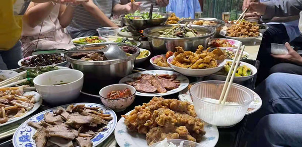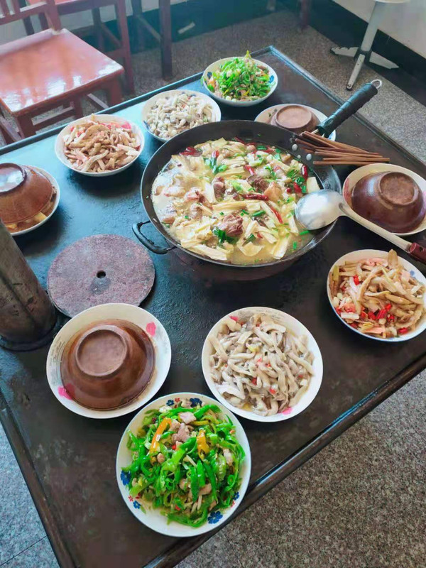做饭的过程中我和朋友们各司其职,然后各自负责自己范围内的事情,其实我们都只是打下手的,因为小杨说做饭油烟大,然后他自己帮我们动手炒菜,各种最后的加工全落在了他身上,看着他忙碌的身影,熟练的动作,成型的菜品,心里一股莫名的暖意。最后我们还邀请了三个当地村民和我们一起吃了中饭,聊了聊现在和过去的变化,也切实感受到当地老百姓的淳朴。