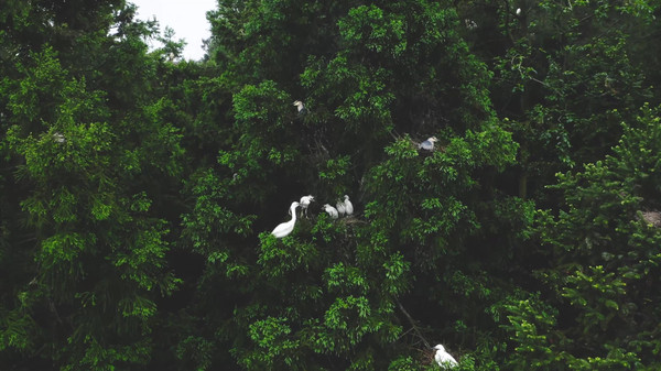 郁郁葱葱的森林,一种沁人心脾的感觉。这也难怪成群的白鹤会选择在这里栖息,这里的空气湿润,温度适宜,给人一种舒心,淡然和平静。我们不知不觉靠近了鹤群的集中栖息地,看到了成群结队的白鹤,白色的,灰色的,红色的,场面甚是壮观。小杨告诉我们,不能靠得太近,也不要打扰他们的生活。确实,这是红鹤坝的财富,更是他们的瑰宝,而这里也是白鹤最好的家,我们又怎么忍心让红鹤坝人民失去这么好的伙伴,也不忍心这群白鹤失去自己赖以生存的家园。