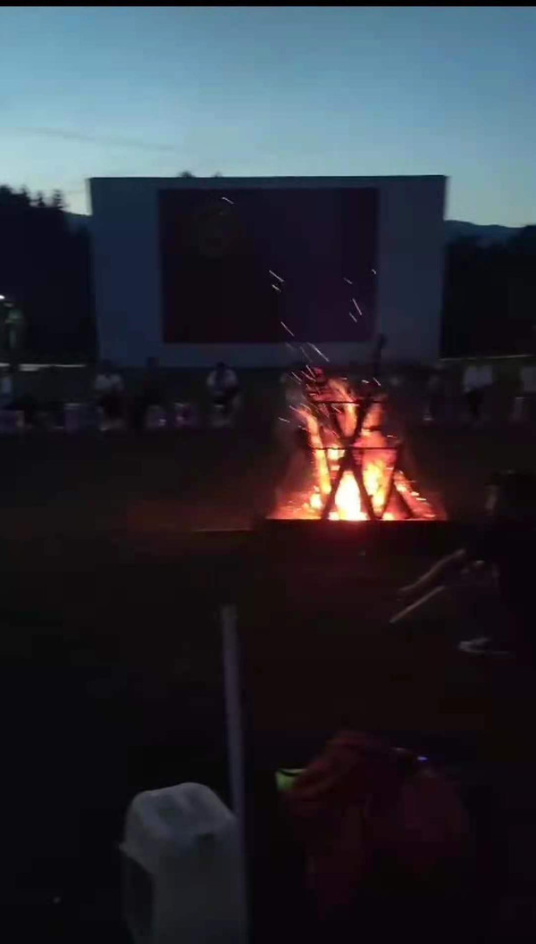 我们在围观的过程中得知在后面还有篝火晚会,然后小杨问我们是否想要参加,说这个活动是红鹤坝自己组织的,如果想要参加我们也可以,听到这个消息我们欣喜若狂,小杨和那个拓展教练沟通后我们也一起加入了,大家跟着教练一起跳摆手舞,抓钱舞,刷卡舞……