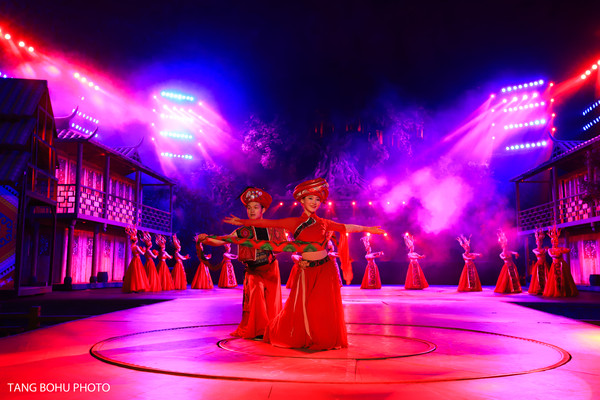 闯入女儿城,晚上不要错过了这里的沉降式演出,精彩的演出吸引了众多的游客前来观看。