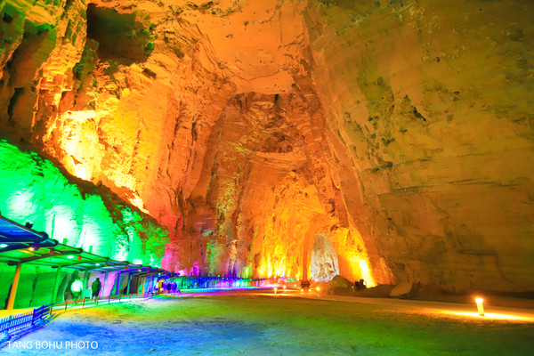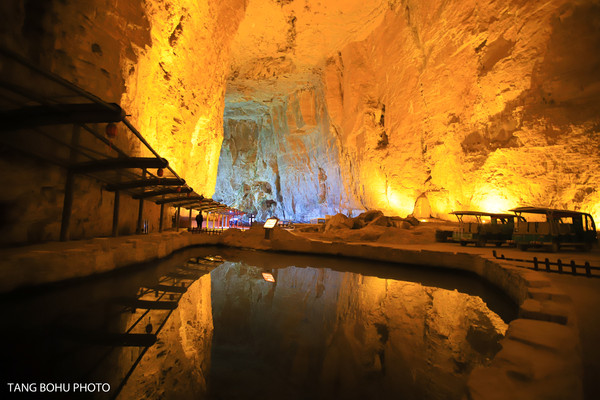 腾龙洞是中国最大溶洞,直升机可进出洞