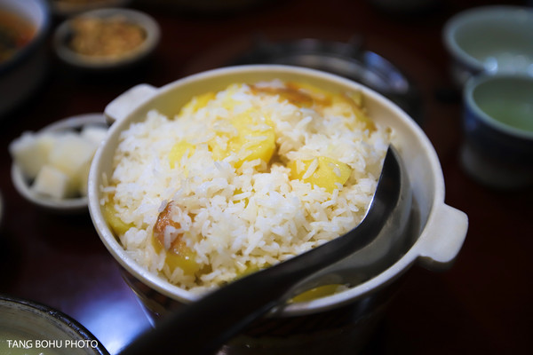 说到 恩施 美食最代表的第一个就是土豆饭,没想到 恩施 的土豆这么出名,其中富含硒是主要原因之一。而且这里的土豆个头并不是很大,煮饭的时候加入土豆味道更香。 恩施 人从小爱吃土豆,自然也是想方设法把土豆做成各种各样的美食,土豆饭就是其中一种。把土豆去皮切块,下锅加盐炒变色,均匀铺在炒锅锅底,倒上蒸好的米饭,直到能闻到土豆的焦香味,跟锅接触的一面全是焦黄的锅巴,令人垂涎欲滴。