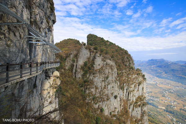 只有现场观看才能感受到那份震撼。绝壁长廊走着走着就感觉是云中漫步一样,仿佛可以手可摘云朵,不敢高声语。绝壁长廊修建于净高差300余米之绝壁山腰间,惊险刺激,沿栈道游览,一路可以欣赏大峡谷风光。
