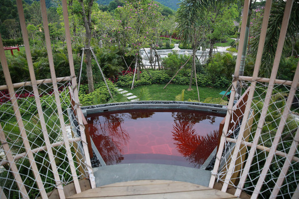 温泉酒店有很多,但森林海温泉度假酒店的空中鸟笼温泉池定是华南地区独有的特色。