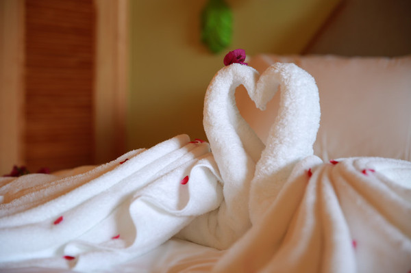 床铺上的毛巾装饰,犹如玩具,小朋友都不忍心把它拆散。