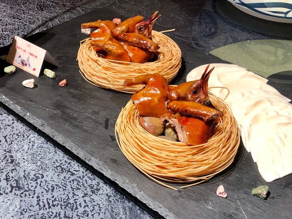 特色乳鸽,外酥里嫩,别看盘子上放着几颗小石头,那可是能吃的巧克力豆。