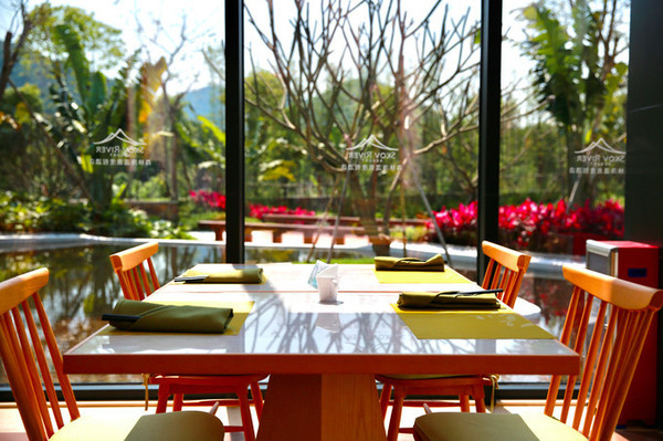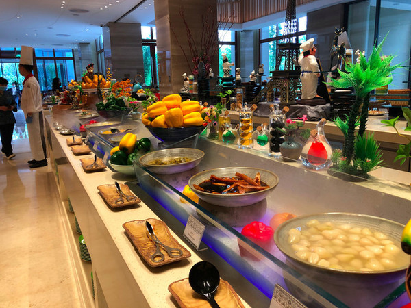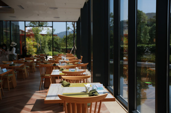 大堂右手边即是酒店中西结合餐厅,穿过自助餐区后,一个三面超高落地玻璃的用餐区让我眼前一亮,这不就是我心心念念的玻璃房子吗?