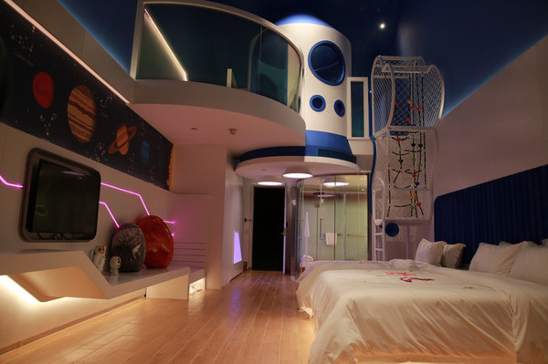 除了丛林探险房以外,还有另外两种风格的亲子房,出于猎奇,我也去参观了一下。