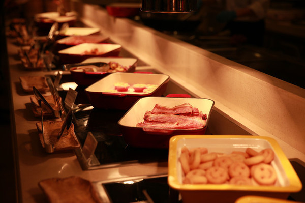 第二天睡到自然醒,一看手表竟然才早晨7点,此时何不再享受一次温泉浴呢? 泡完温泉,自然就该到觅食早餐的时候,房费已经包含了相应的免费的自助早餐,来之前就已经听说这里的自助早餐很丰盛,这次体验,果然没有让我失望。