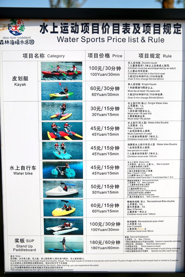 这里提供皮筏艇、水上自行车、划桨等多种水上娱乐设施,当然这是额外付费的,带着小朋友可以体验观光小游艇、带棚的水上自行车等相对不用体力也更安全的项目。