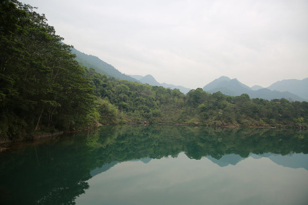 景区入口有个宁静的湖泊,当天天气不好,少了蓝天白云的衬托。