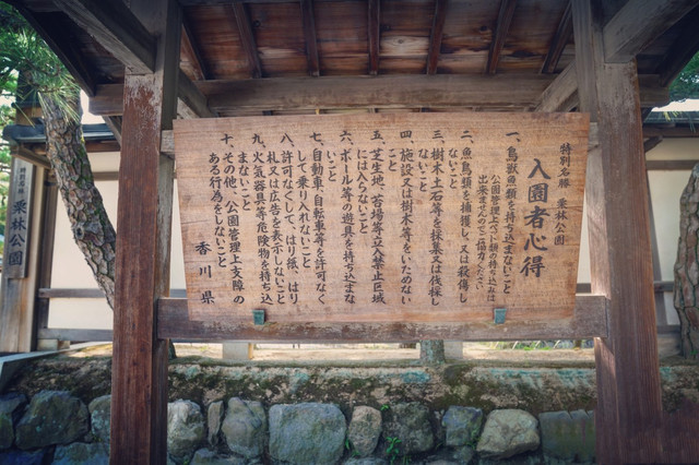 轻轨琴平线有专门的一站就是栗林公园,到达后出站跟着标示笔直向前走就是。门口需要买票,还有敲章(敲章狂们别错过),一进门就是院内的地图(虽然看了也没什么用,最后还是乱走)。里面很大,地面以沙石为主,各种植物各种鸟各种松树各种生态好,所以不要穿凉鞋和高跟鞋(沙石很容易进去,一直要脱鞋子好尴尬)。百度这个景点资料就更多啦,我就不啰嗦啦,建议稍微做点功课再去,不然就跟逛公园没啥两样。