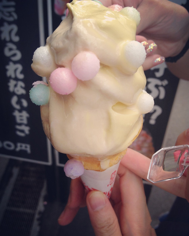 他们对乌冬的爱已经融入了方方面面,,,,包括冰激凌!!!!!不过我还是选择了另外一款特产——和三盆糖冰激凌,实在可爱爆了。