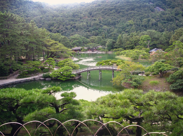 作为日本三大园林之一的栗林公园,在高松的名气可不弱,这里的各种园林的设计和造景可是很厉害的,以6个水池和13处假山丘布局而成,景致多样,四时风貌不同;在三百多年前的江户时代初期到中期,曾是全日本最著名的『回游式大名庭』。