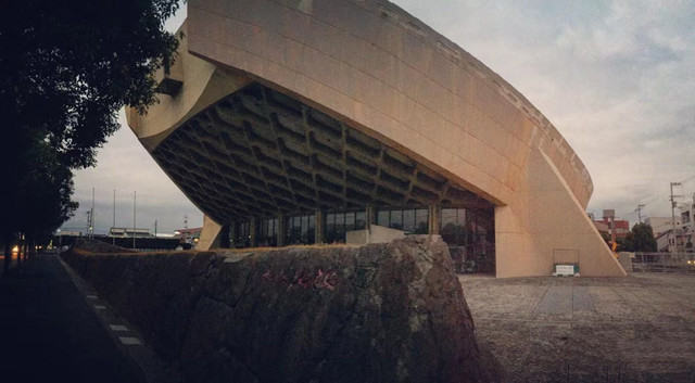 另一座香川县立体育馆是丹下建三载1962—1964年设计的,一起去的小伙伴说这个是参照武士帽子做的,但我怎么都觉的像条鱼。