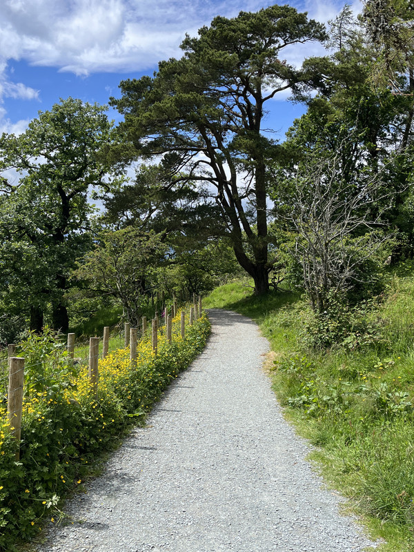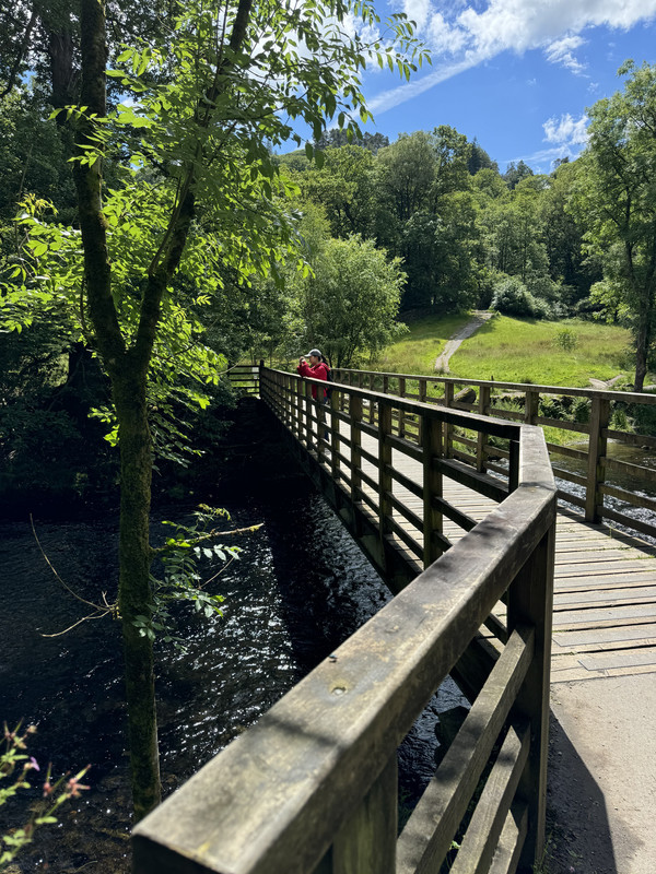 坐车在这个区域真的也是非常优美的享受,因为这段路程比较崎岖,一会儿进入山谷,一会儿驶向高峰,湖水和树林草地绿油油的时隐时现,跟Windermere差别还是挺大的。这段路不论是阳光照耀下的湖景还是岸边的长满绿草的松树林都犹如童话故事里的场景,吸引驻足好好欣赏,走走停停感受着大自然的美妙。
