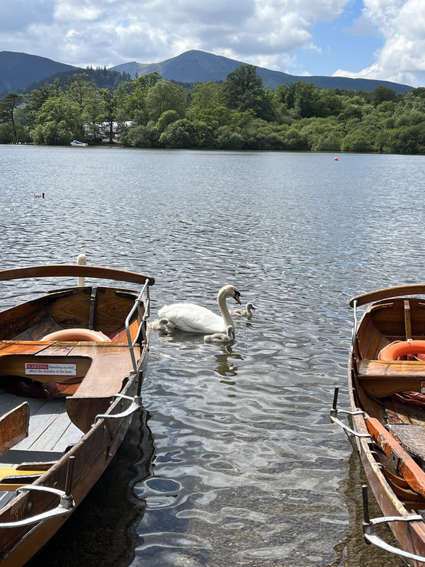 船会在不同的点停下来再开。我们两个坐到最后一站下来hiking。这里能近距离接触到很多野生动物,比如超可爱的小羊、美美的天鹅等等。这个湖水和小镇是正好在群山之中,给人一种格外幽静的感觉。同时非常适合徒步,很多人都会选择环湖徒步一圈。湖边走走,白天鹅、灰雁和鸭子悠然自得,密不可数,湖边很多人在悠闲地吃着炸鱼薯条汉堡,人与自然天然融合,一切很英伦。