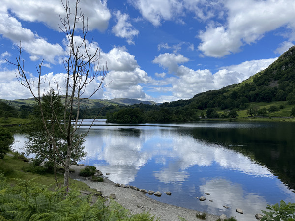 因为对姜饼无感,我们在Grasmere休息一会后,往回坐车到Rydal Church下车。整个湖区有错综复杂的步行路线,也许在道路边,也许在湖畔,你都能随时发现 Footpath 的标志牌,走进去就是了,一定会有别样的风景等着你去发现。Rydal镇是一个位于湖区的小镇,Rydal湖在湖区的众多湖泊中属于中小型湖泊,边上相邻的是Grasmere湖。坐巴士555或者599到Rydal下车,然后沿着河的南侧朝西走。从这里,穿过一片森林就可以看到Rydal湖。