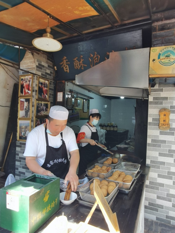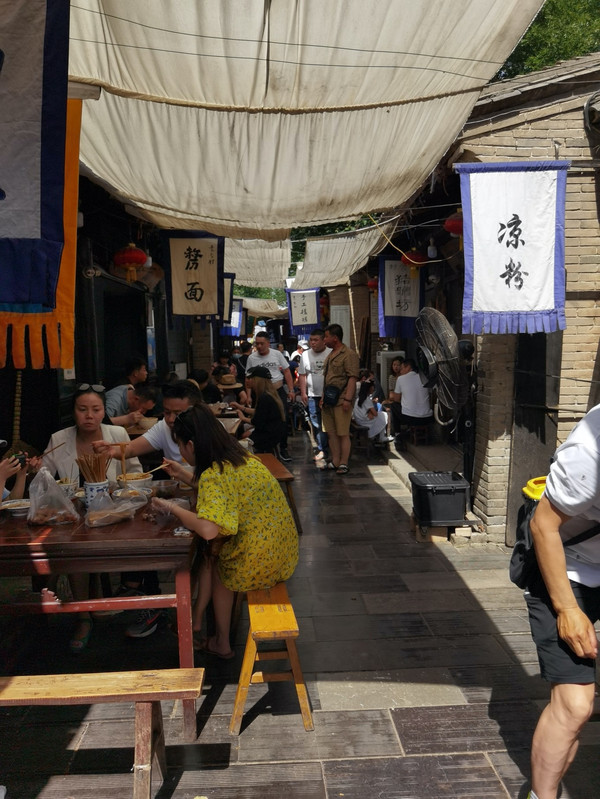 入村经过喝茶的戏台子(吃完在这里喝茶、打牌、采耳也不错),右手第一条街上凉粉、猪蹄、络面、乾县豆腐脑、粉蒸肉不容错过~