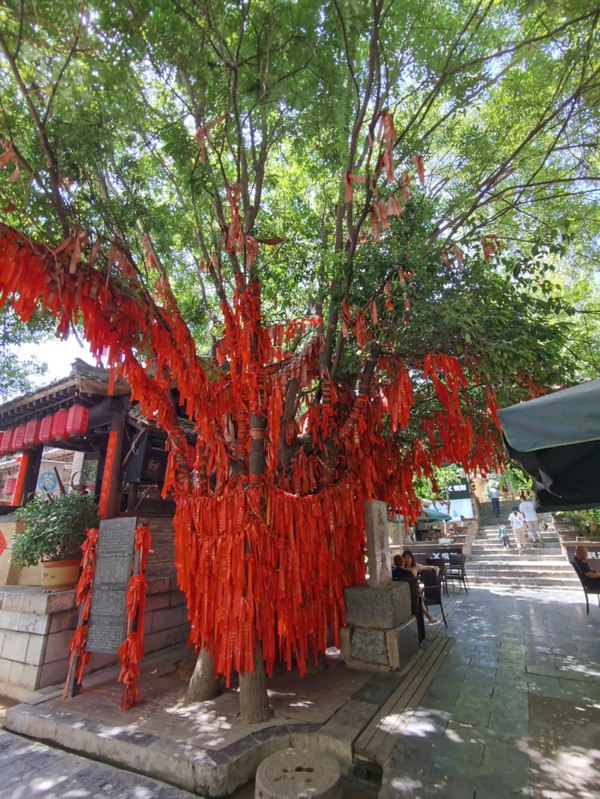 在一棵不知道什么品种的树上,全是红绳,咱也不知道这是不是求姻缘的,绑一个再说🌸🌸