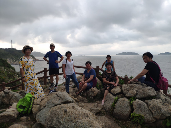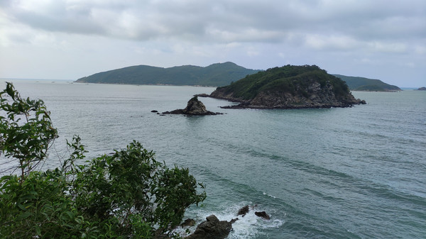 早晨五点准时出发去看日出,据天气预报:黄色暴雨预警,看到日出的可能性不大,但大家依然热情不减,昨天晚上就租好两辆越野车以便今天早晨看日出兼环岛游。下川岛看日出要到米岩或更东边的大湾。环岛游可欣赏下川岛蜿蜒曲折的海岸线,近看惊涛拍岸,远观沧海万里,天地苍茫,辽阔雄浑。岛上的葱绿的植被、恬静的渔村、朴实勤劳的渔民。。。都是美美的风景。我们的游玩路线是:米岩、大湾、川东村、返程到牛塘村、米岩、牛塘湾、牛口公园(越野车150元/3小时)