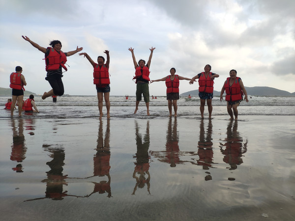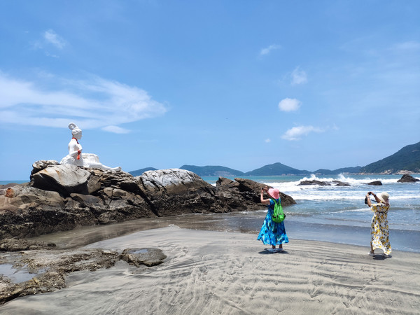 我们入住位于海边的下川岛南澳湾村的海景别墅,放下行囊,大家迫不及待地奔向了海滩。由于是疫情期间,景区游客不多,我们好像是在私家海滩游玩。海滩的主要景点有:浴女乘龙、龙女洞、音响石等