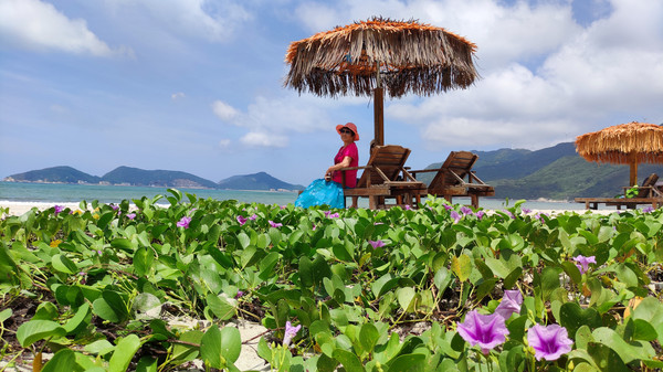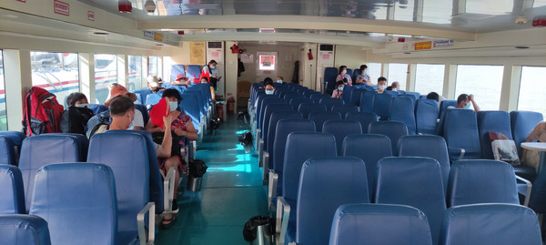 因受新冠病毒疫情的影响,即使是星期天到下川岛的游客也是寥寥无几的,也许是第一班船的缘故吧。