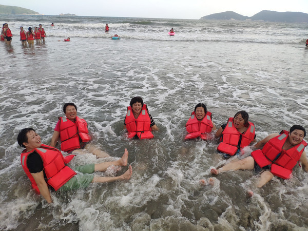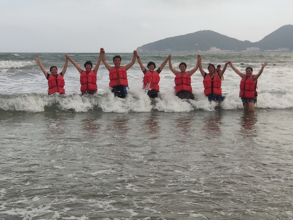 午饭后,大家睡了一个饱饱的美容觉,体力得到了恢复,下午四点半太阳光也柔和了许多,正是冲浪的好时光,大家兴奋地投入了海的怀抱。
