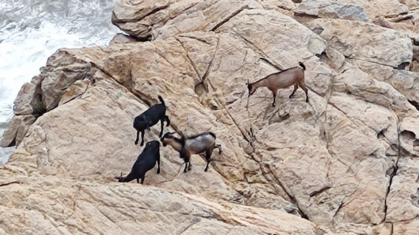 米岩观景台下的海边有几只山羊,它们也来等日出?