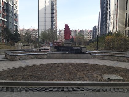 小区中心有800平方米的绿地,绿地周边有水池儿童滑梯等娱乐设施,很多小朋友放学后再这里玩耍