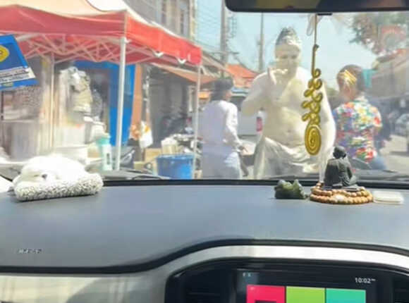 ขับรถผ่านคนเล่นสงกรานต์ อยู่ ๆ เจอท่านโบกให้เจิมรถซะงั้น