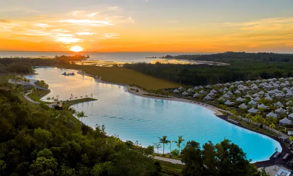 欢迎莅临下榻Natra民丹岛臻品之选度假酒店,畅享家庭友好的豪华露营度假体验。酒店俯瞰印度尼西亚民丹岛的水晶泻湖——东南亚率先修建的大型人工海水礁湖。我们的民丹岛家庭度假酒店是团体和企业活动的理想下榻之选。酒店提供多处室内外场地,每处空间均有美味餐饮供应。在草木葱郁的地面搭建帐篷,私人露台坐拥花园或礁湖景观。每处露营帐篷均配备特大睡床、LED电视、迷你冰箱、沙发床、室外雨林淋浴间、免费Wi-Fi和空调设备。在露台餐厅酒吧享用诱人美食或日落鸡尾酒,欣赏迷人的礁湖景观,或在您的帐篷露台上进行烧烤。在导游的带领下,游览红树林,探索自然美景;在民丹高尔夫俱乐部惬意挥杆;或在沙丘捕捉令人惊叹的瞬间。
