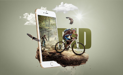 3. 选中【图层1】与【手机】,【Ctrl+T】调整大小与位置。调整【背景】图层,【Ctrl+T】调整大小与位置。添加【蒙版】,【Ctrl+单击缩览图】调出【图层1】选区,点击【蒙版】,【Ctrl+Shift+I】选区反向,选择【画笔工具】,黑色画笔,进行涂抹背景。