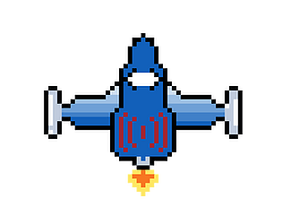 A low rez (64X64) space ship, with a idle animation sprite sheet, and a prefab for a green laser shot.